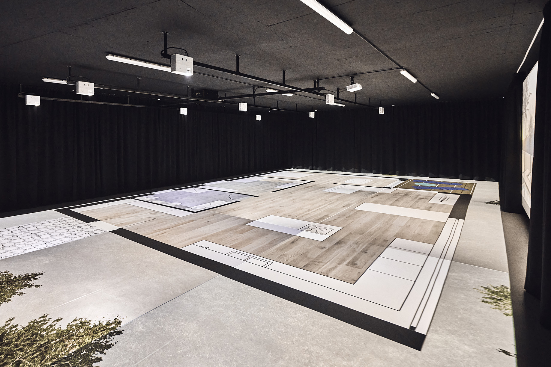 Im Originalmaßstab, auf einer Projektionsfläche von 180 Quadratmetern, die es erlaubt, beliebig große Flächen zu begehen. Zum Anfassen und Ändern. Geeignet für den Traum vom Eigenheim, für Büroflächen, Geschäfte, Hotels, Gastronomie, öffentliche Einrichtungen und urbanes Design. Planungssicherheit, Zeitersparnis, Kostensenkung: Reale Einrichtung auf dem mit neuester Technologie visualisierten Grundriss, das Ganze begeh- und greifbar. Eine innovative Ergänzung des Planungsprozesses, die den Grundriss erlebbar macht, bevor auch nur ein Euro in den Bau gesteckt wurde!